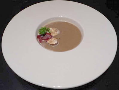 Crème de champignons au filet de canard