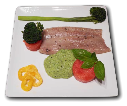 avec le poisson, le poulet et les plats de