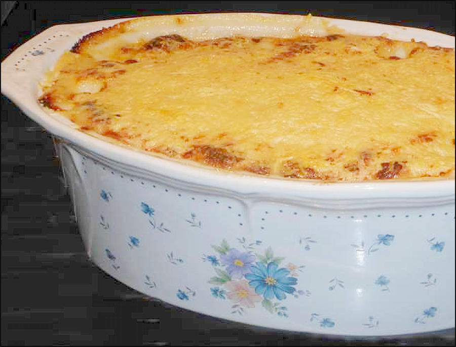 la cuisson. Le tout est recouvert de béchamel