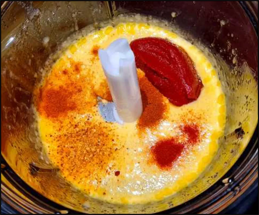 zout. Mix, proef en corrigeer. Peper toevoegen