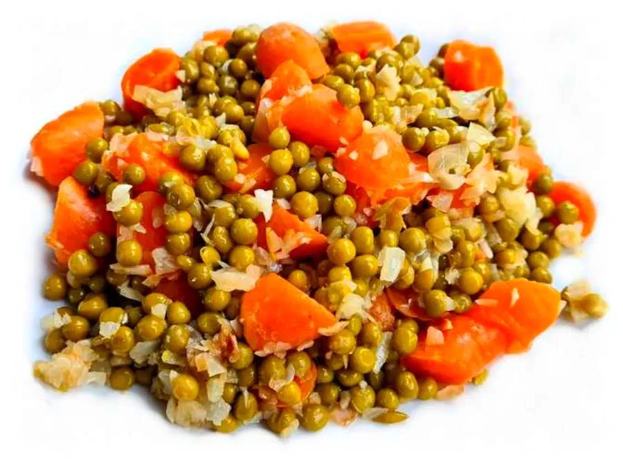 Erwtjes. Snijd een ui in een zeer fijne brunoise en stoof deze glazig in een klontje boter. Kies je voor doperwtjes uit een bokaal, laat die dan uitlekken in een zeef. Voeg ze toe aan de gestoofde ui. Roer goed om en laat de bereiding na een minuutje stoven, uitdampen op laag vuur. Gebruik je erwtjes uit de diepvries, stoom ze dan eerst gaar in 30 minuten op 110°C. Schep ze bij de gestoofde ui. Laat ze afgedekt nog een kwartiertje staan op laag vuur. Kruid in beide gevallen met peper uit de molen en grof zout.Worteltjes. Schraap een paar jonge worteltjes, snijd ze diagonaal in schijfjes en stoom ze gaar in 20 minuten op 110°C. Ze moeten nog beet hebben.Schep de worteltjes in een pannetje met bruisende boter. Kruid met tijm en rozemarijn. Breng verder op smaak met peper en zout. Laat ze licht karamelliseren.Nu aan jou de keuze: meng beide bereidingen of dien de worteltjes en de erwtjes gescheiden op.