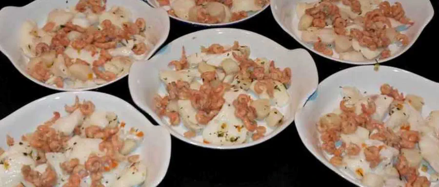 shrimps. Top with a few halved cherry tomatoes and chopped