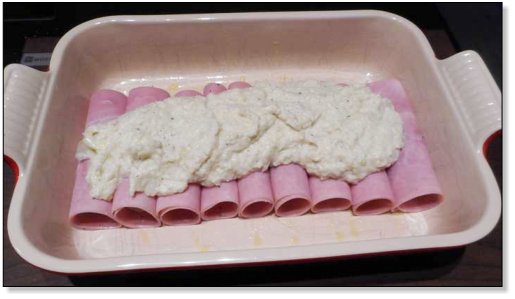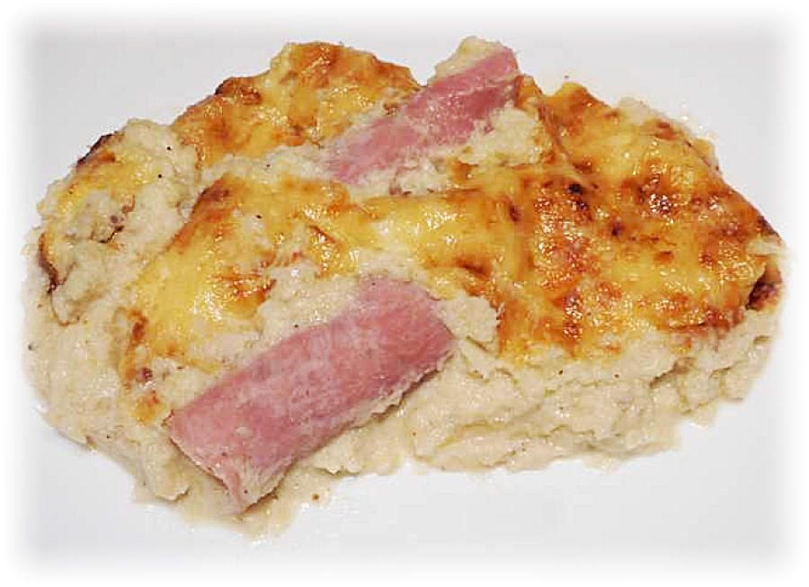 met ham en kaassaus, maar is het dus