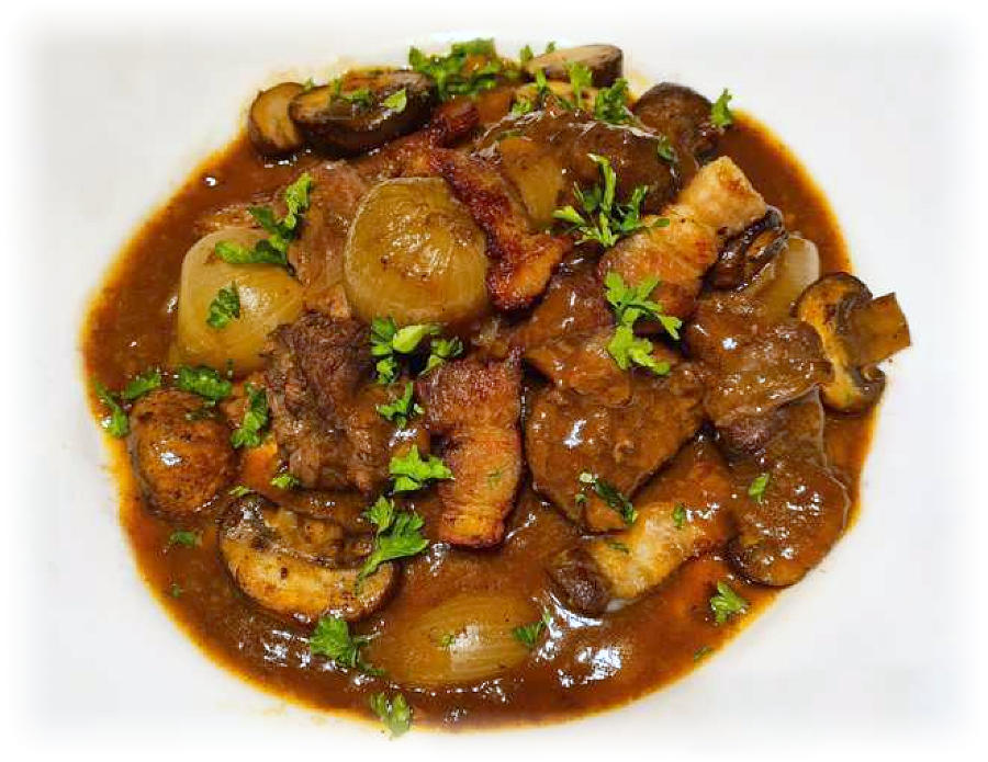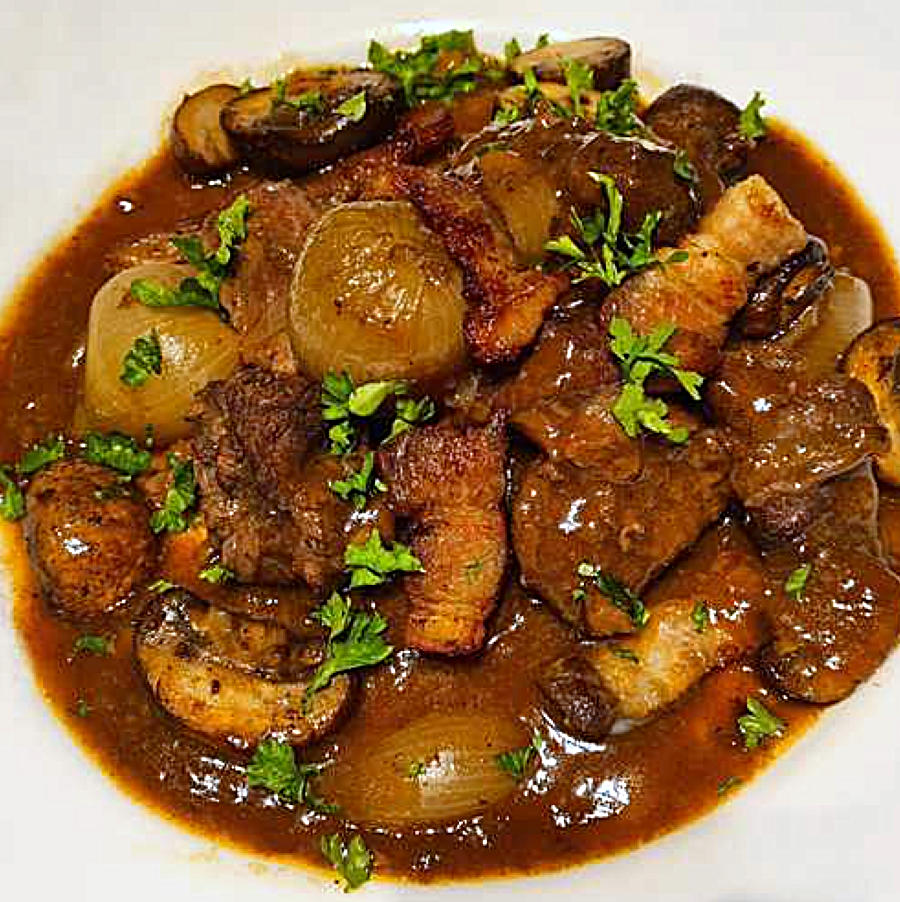 Stoof ze tot bijna gaar. Giet er nu rode wijn,