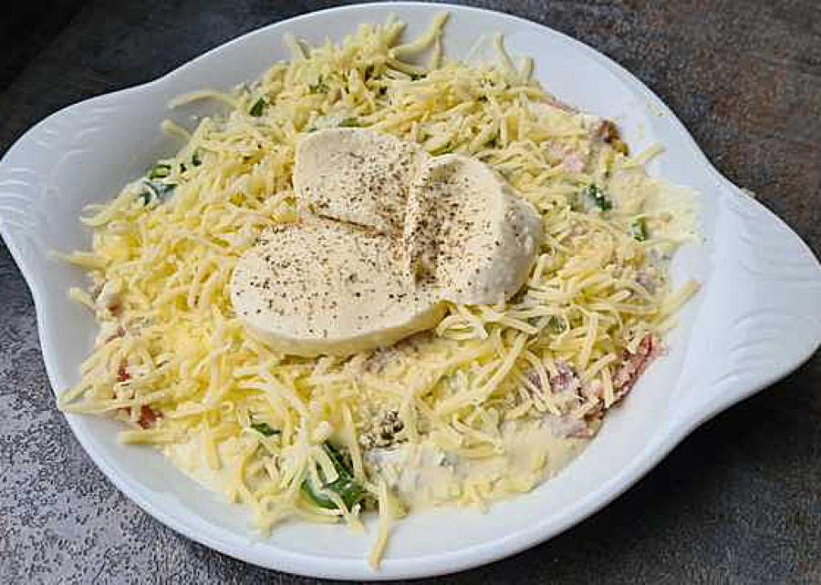 boterpeper en zoutemmentalerparmezaanroomkruidenkaas met bieslookmozzarellafoelieuienpoeder