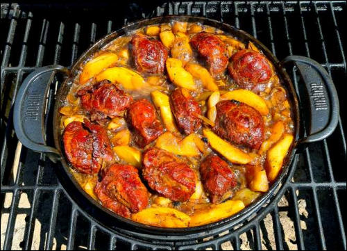 laag vuur. Giet regelmatig cider en bouillon bij,
