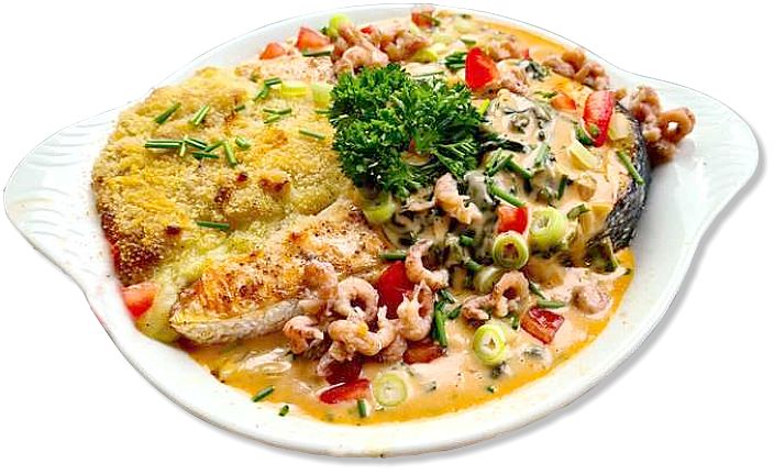 Venkelpuree:bloemige aardappelenvenkelknolgele uikookroomboterpastisknoflooknootmuskaatpaneermeelpeper en zoutAndere:zalmmotentomatenlente-uitjes grijze garnalenolijfoliespraypeper en zout