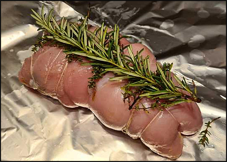 Draai de kalkoenfilet om, snij overlangs vanuit