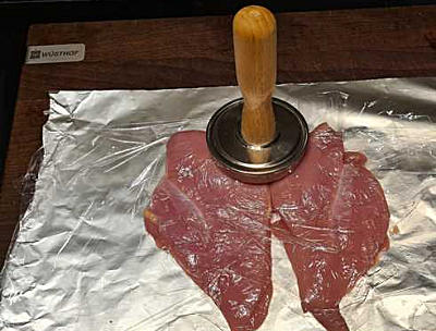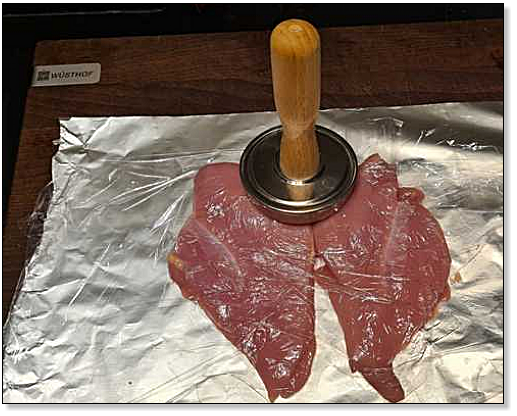 Dek de parelhoenfilets af met een velletje bakpapier of folie. Sla ze zachtjes plat met een vleeshamer. Wentel de filets door de bloem en klop ze af, zodat enkel een fijn laagje blijft kleven.Bak de filets 2 minuten per kant op hoog vuur in een laagje olie in een kleefpan. Ze moeten rondom goudbruin zijn. Giet een scheutje water in de pan, dek af en verlaag het vuur. Laat nog een vijftal minuutjes sudderen onder deksel. Zet de pan daarna afgedekt af het vuur weg. Haal de filets uit de pan en leg ze afgedekt weg op een bord in een oven op warmhoudstand. Zeef het braadvocht. Voeg 20 cl wildfond toe, een paar stuks kruidnagel, een eetlepel rode peperbolletjes en een paar geplette jeneverbessen. Breng aan de kook. Voeg een tweetal eetlepels tomatenpuree en een groot glas marsalawijn toe. Je kan de smaak van de saus aanpassen door meer wijn toe te voegen. Bind de saus met wat vloeiende bloem opgelost in water.Fruit een paar in de lengte gehalveerde sjalotjes gedurende 3 minuten. Voeg een halve bol grof gesneden verse knoflookteentjes toe en laat ze mee garen op laag vuur. Zet deze bereiding even langs de kant.Vul de pan met een scheutje olijfolie en in plakjes gesneden kastanjechampignons. Zet het vuur hoog en bak ze 5 minuten. Voeg de gebakken sjalot met knoflook toe. Giet nu de saus bij de champignons, roer om en voeg dan de parelhoenfilets toe. Laat een paar minuutjes sudderen op laag vuur. Op het bord. Een parelhoenfilet met de champignonsaus. Werk af met gehakte peterselie. Dien op met aardappelkroketjes of een ander bijgerecht naar keuze. Lintpasta bijvoorbeeld.