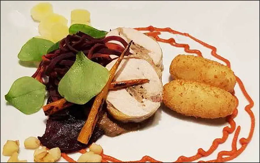 paar schijfjes gegrilde biet, de jonge worteltjes,