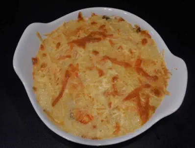 Geglaceerde kwartel, puree van rodekool met pruimen