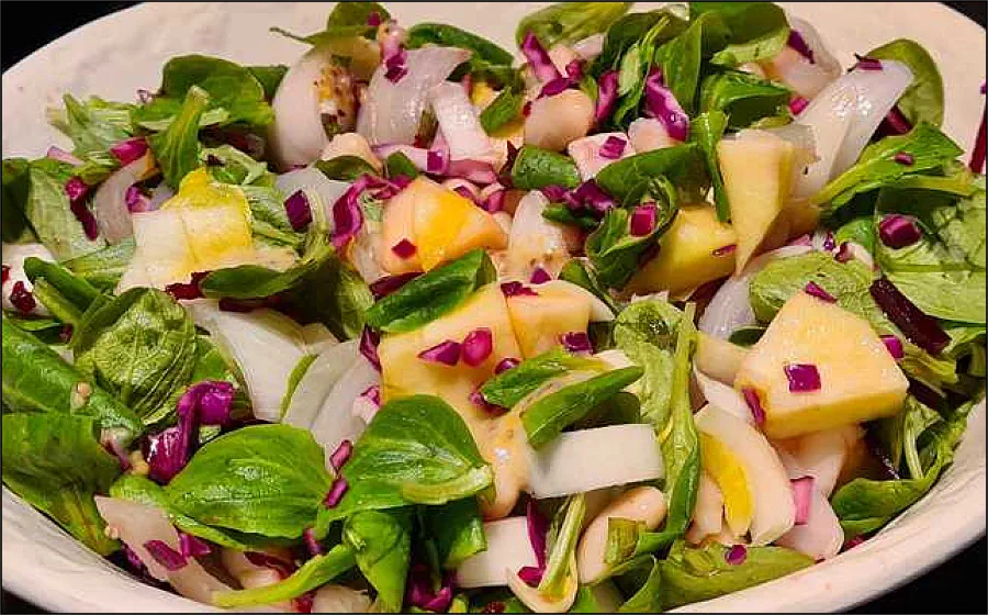 ingrediënten gemengd in deze salade: