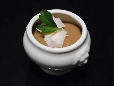 Velouté van pastinaak met ravioli van eendenbout