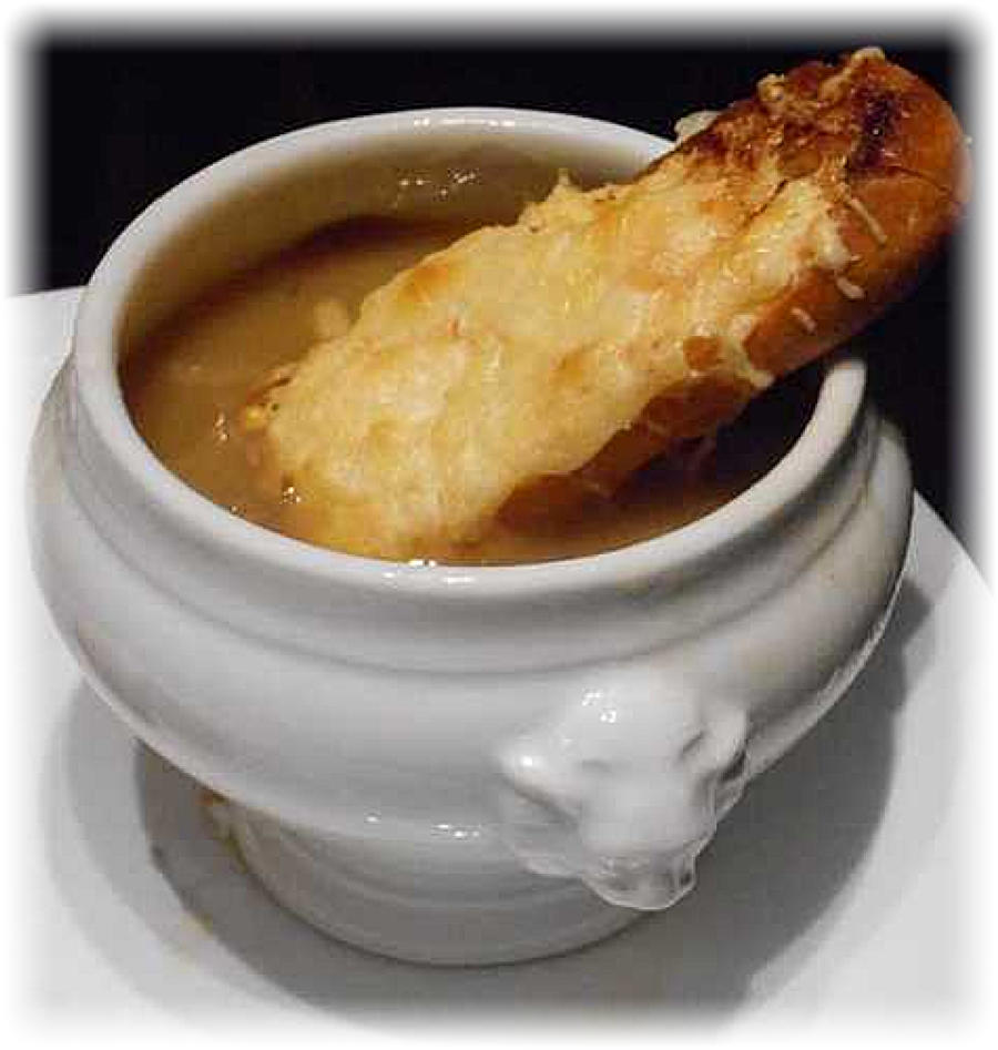De bistrokeuken is een typisch Frans fenomeen. Het zijn meestal gezellige eethuisjes waar je ook op je gemak een glas kan drinken. Het verschil met de fastfood- cultuur is, dat je in een échte bistro geen industriële voeding op je bord zal krijgen. Het aanbod aan gerechtjes is door de huiskok bereid, met verse streekproducten. Dit recept van uiensoep wijkt licht af van de Parijse uiensoep. Die wordt gemaakt op basis van vleesbouillon in plaats van kippenbouillon en er gaan een paar flinke glazen witte wijn in de kookpot.