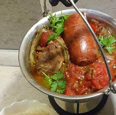 knoflook wortelen witte wijn komijn paprikapoeder peterselie lamsfond varkensworstjes rijst peper & zout
