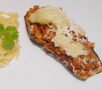 tomatenpuree aubergines lamsgehakt komijn kaneel olijfolie ouzo peterselie