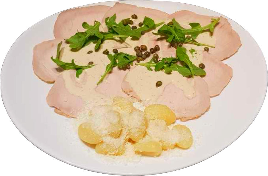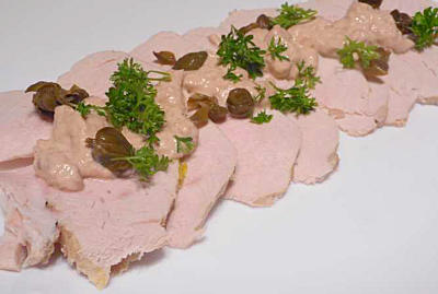 Snijd het vlees in zeer dunne plakjes. Leg het in