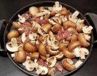 champignons, een stuk versneden kip en een