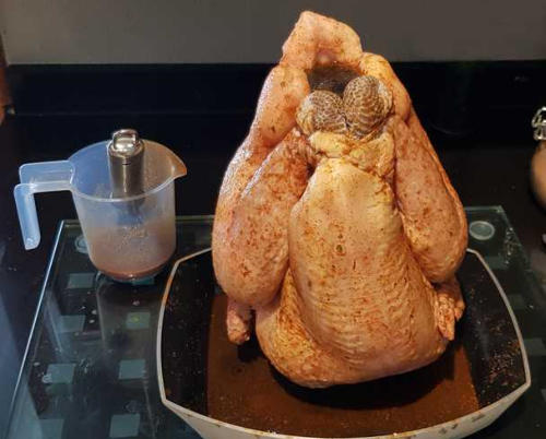 kipkruiden en olijfolie. Borstel de kip hiermee