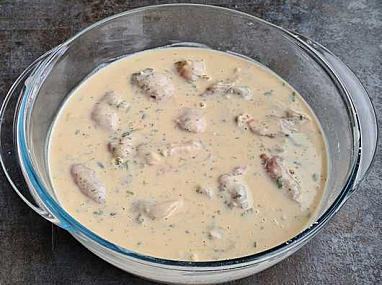 Schep de wangetjes door het beslag. Frituur ze uitgelekt in olie op 180°C tot ze goudbruin kleuren. Dien op met remoulade-, ravigote- of tartaarsaus.