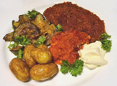 flinke schep zigeunersaus, krieltjes en gegrilde