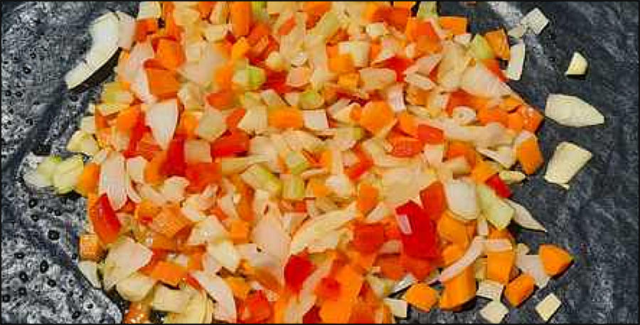 Bereiding in stappen. Begin met de groenten