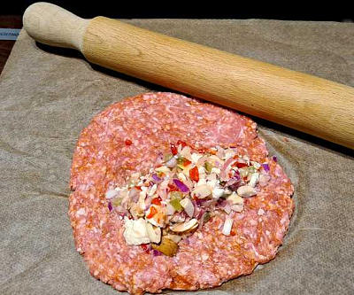 Snijd rode ui in blokjes. Pers een paar gepelde