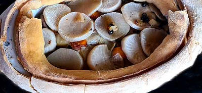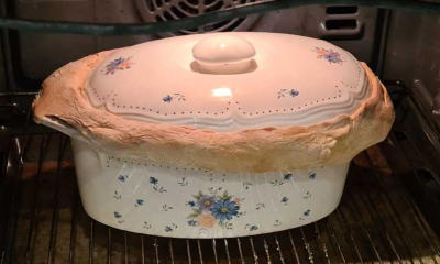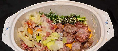 Zet de pot 2 ½ uur op 185°C, beginnend van