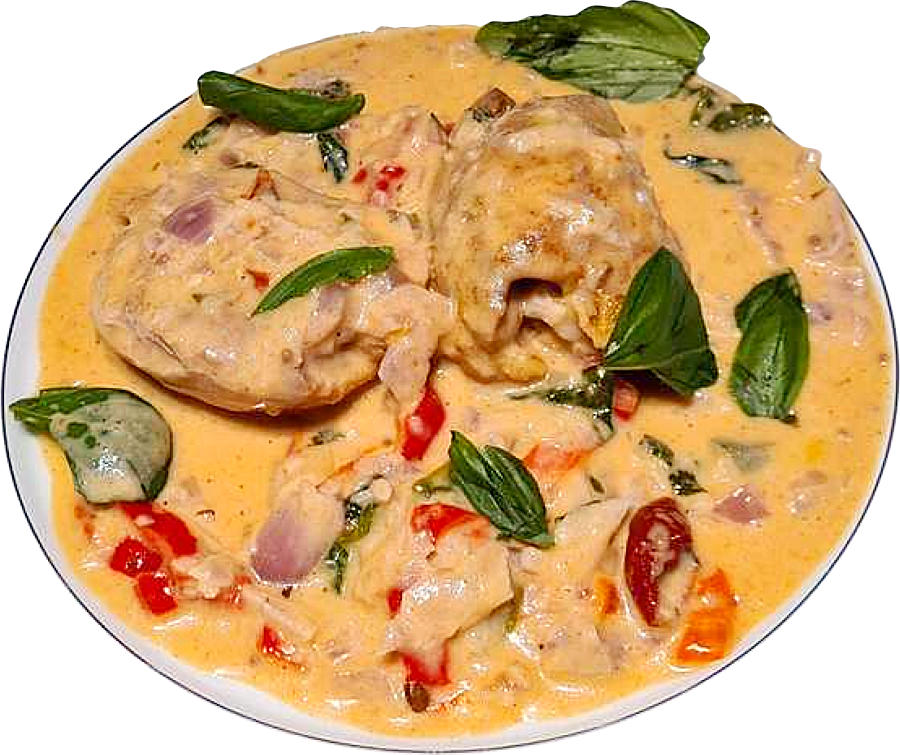 ‘‘Pollo alla toscana in salsa di crema di parmigiano’ bestaat uit stukken gebraden kip in een fluweelzachte roomsaus met Parmezaan. De toevoeging van jonge spinazie maakt de smaakervaring nog rijker. Dit is waarschijnlijk één van de beste manieren om kip op z’n Italiaans klaar te maken. En een voltreffer aan tafel, gewaardeerd door groot en klein.