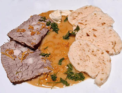 vleesjus. Giet de vleesjus in een kasserol. Doe