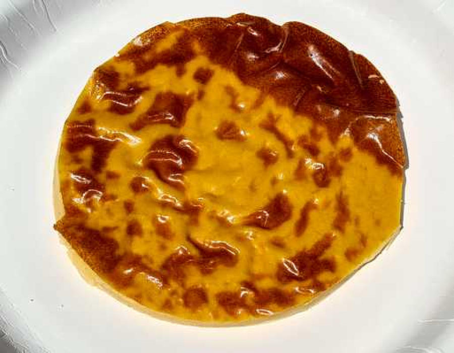 Op het bord. Een schijf farinata. Schep