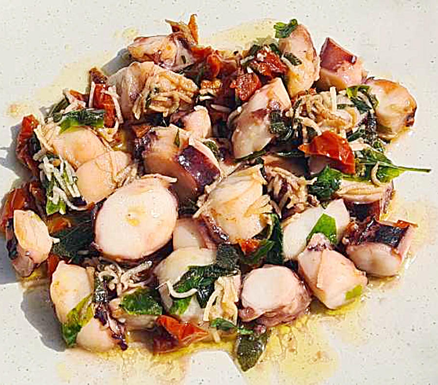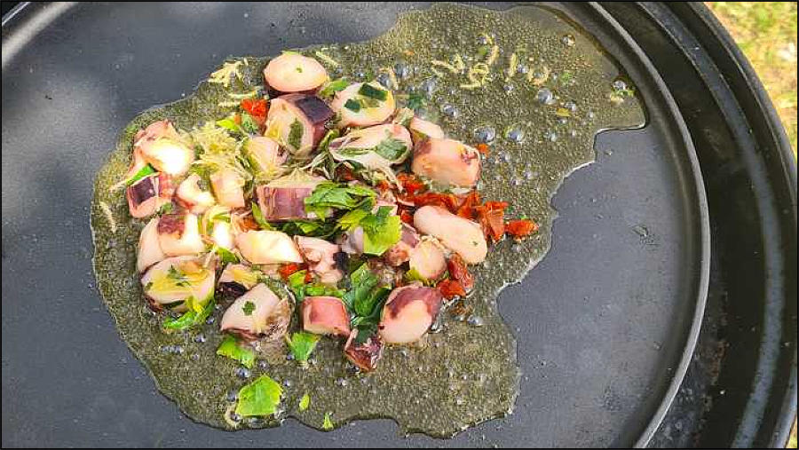 een paar ansjovisfilet in reepjes. Doe hetzelfde