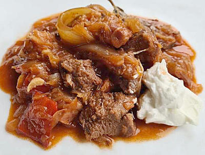 zuurkool, onderdeel van Szegediner goulash zuurkool mag niet ontbreken in deze goulash
