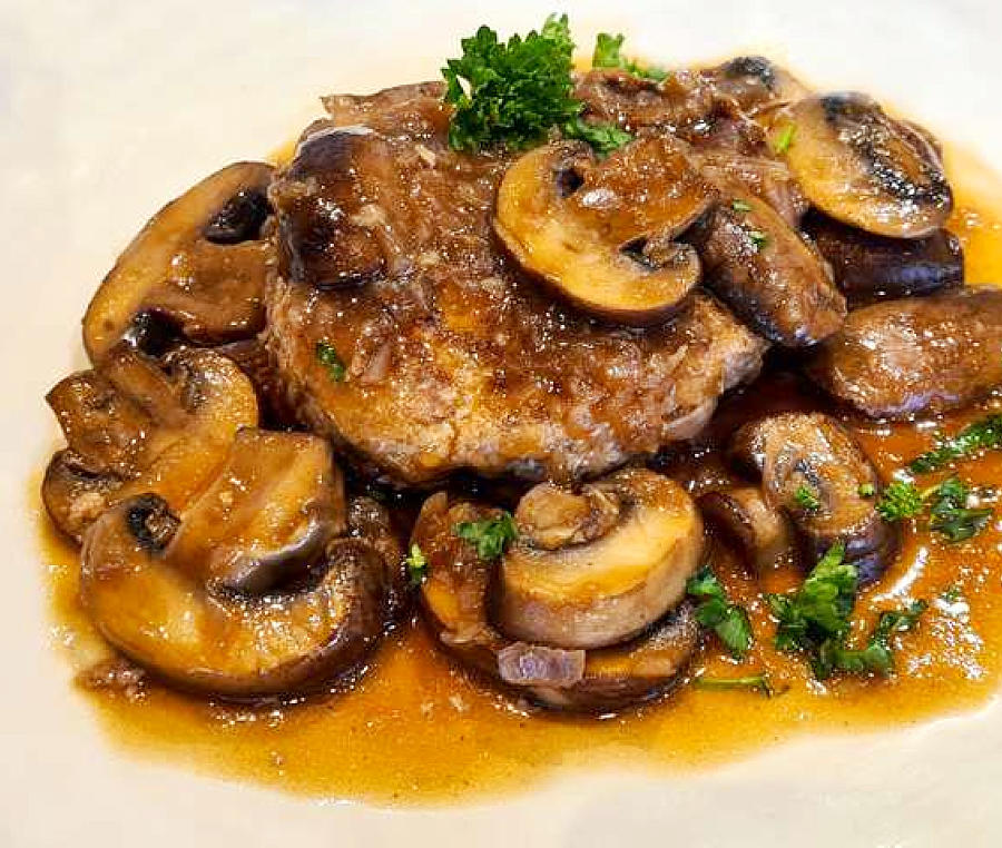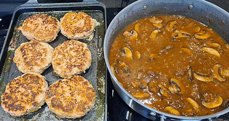 Op het bord. Leg een Salisbury steak op het