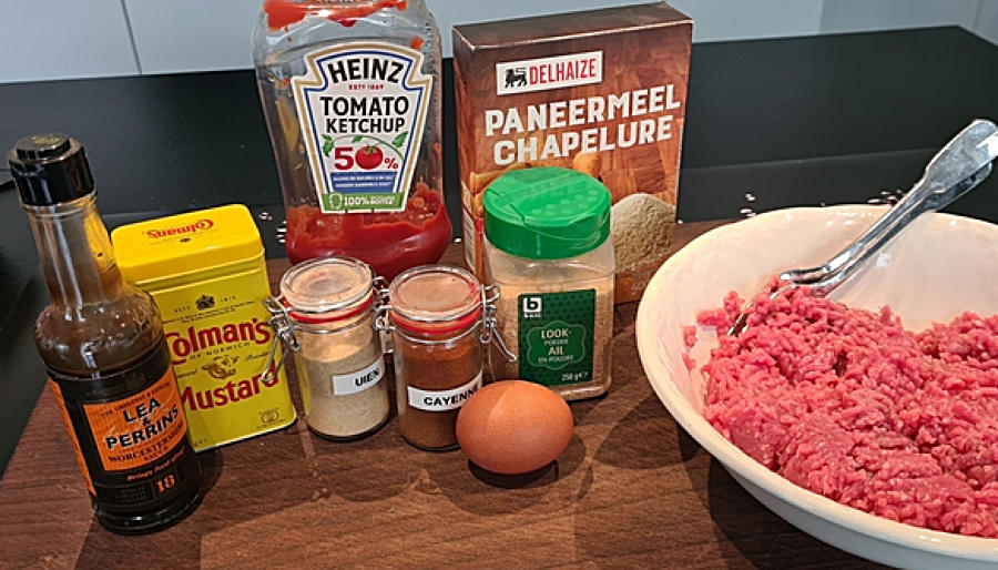 De steaks: Meng 750 g gemalen rundvlees met